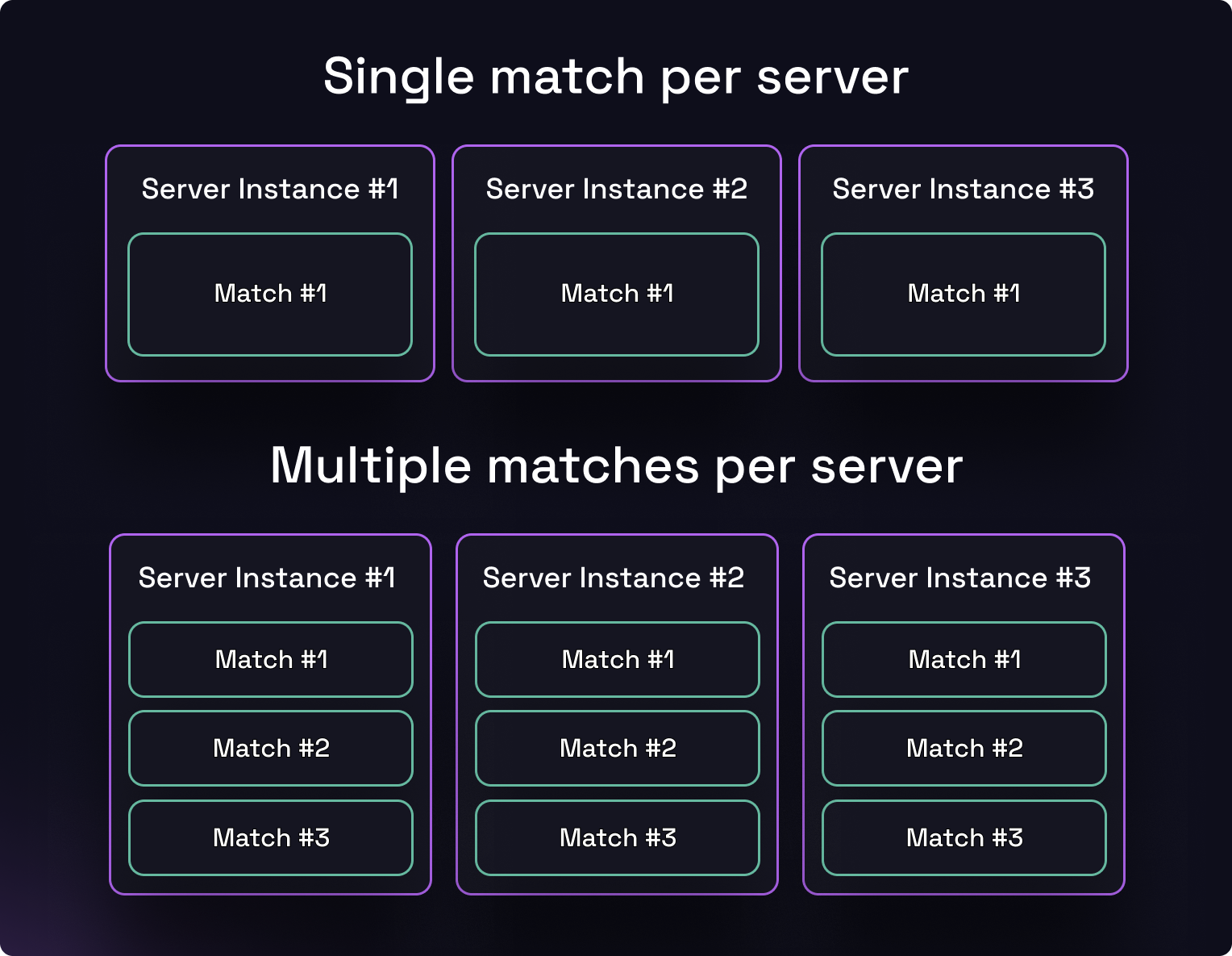 That is just the first layer of optimization, next you can further reduce server costs by running multiple matches or rooms on a single server instance. Each server instance will have some constant CPU & memory overhead cost — and even more-so with servers running headless engines (common for Unity and Unreal multiplayer games).