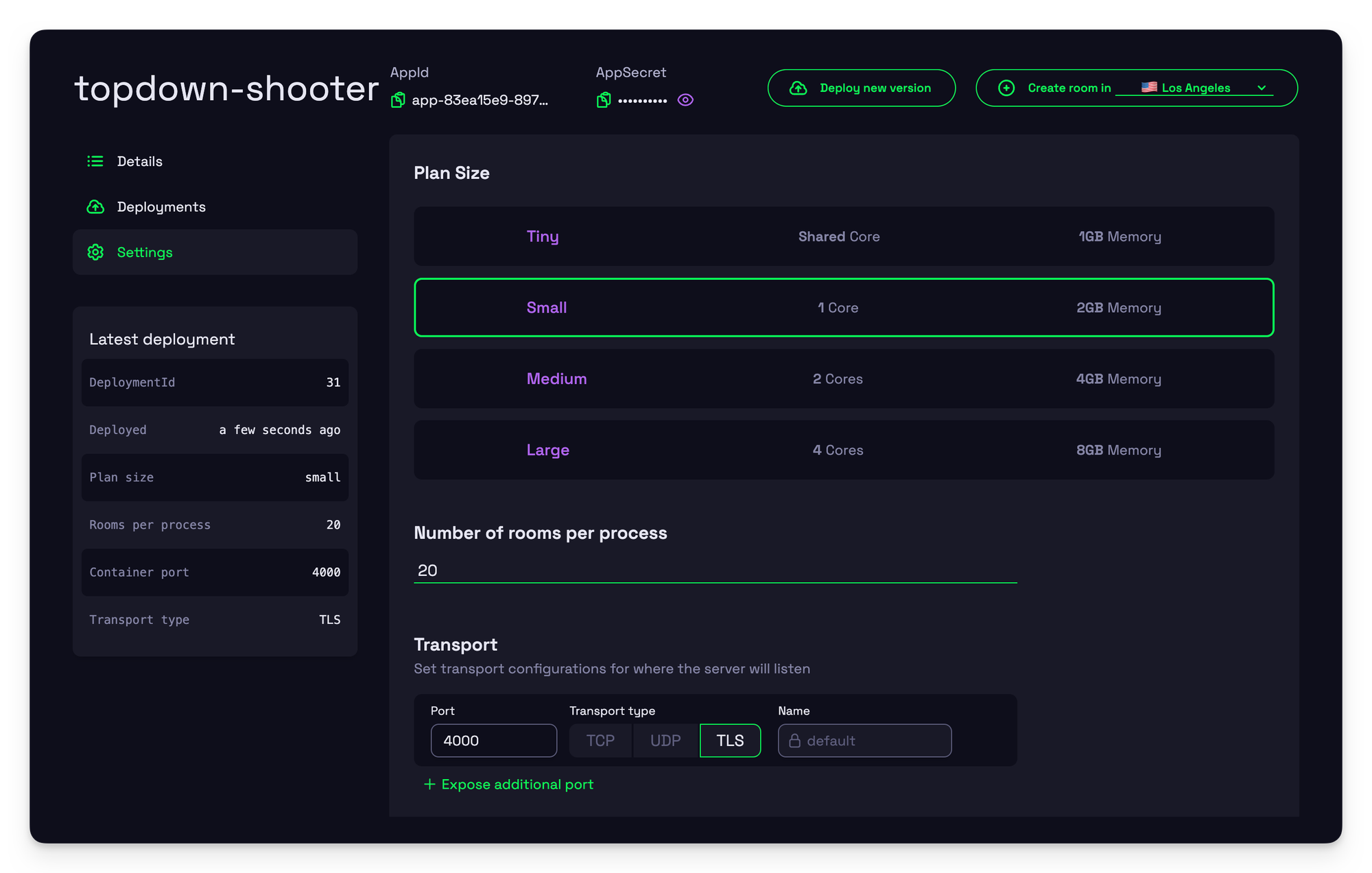 roomsPerProcessto equal the max number of matches (n) a single server process can handle. Then add n additional ports via Hathora configuration (Photon requires a unique port to be mapped to an active match)