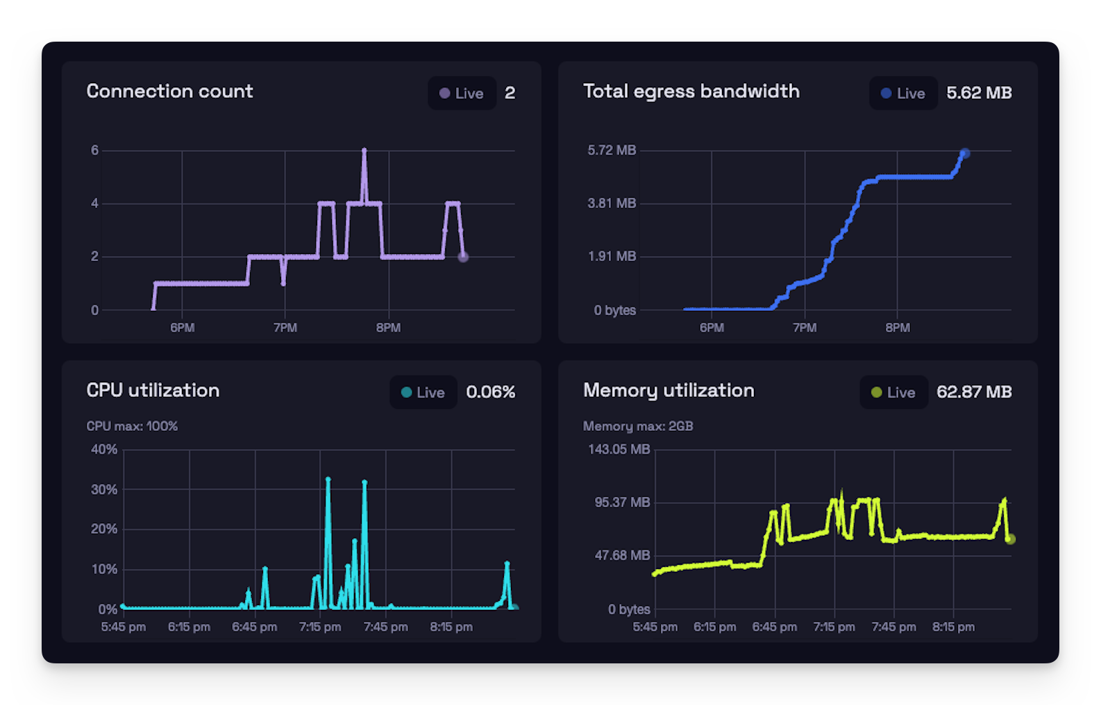 The first and most straightforward optimization for your servers is to tune the CPU utilization, bandwidth egress, and memory pressure. To help you achieve this, picking a networking solution, like Photon Fusion 2, that is well-optimized out-of-the-box can go a long way in limiting costs by drastically reducing bandwidth usage. You should also use a scalable server hosting solution that allows you to easily monitor and configure your servers. With those metrics available, you can tune your server’s CPU, memory, and egress to maximize usage efficiency without sacrificing performance.